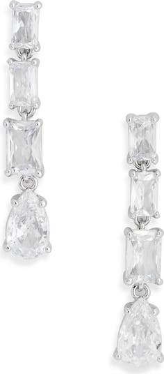 Mixed-cut cubic zirconia bring icy sparkle to these glamorous linear drop earrings finished in polished rhodium.