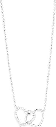 Showcase eternal love with your everyday looks in this interlocking heart necklace plated in icy rhodium.