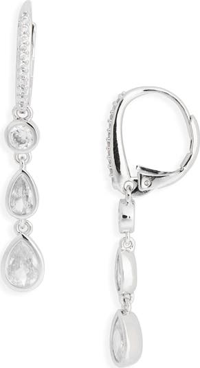 Bring some sparkle to your lobes for your evening ensembles with these lever-back drops showcasing bezel-set cubic zirconia stones.