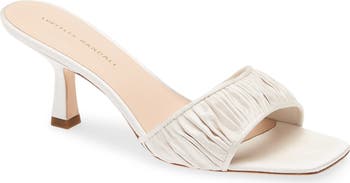 A gathered front strap adds eye-catching texture to this charming sandal that's perfect for day and evening events.