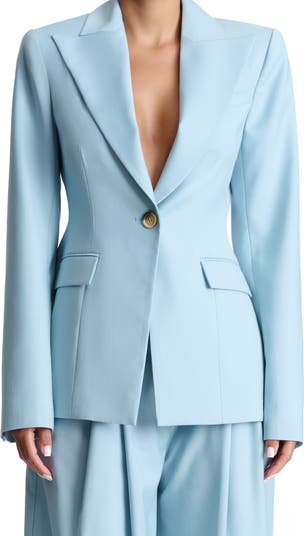 Achieve a sculptural silhouette in this chic one-button blazer framed by sharply peaked lapels and crafted with shapely stretch for easy movement.