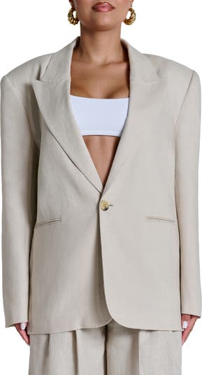 Complete your look with the unmistakable retro vibes of this oversized linen blazer fashioned with classic peaked lapels.