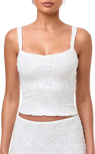 Monochrome sequins bring glamorous shine and touchable texture to a scoop neck tank with a crop hem.