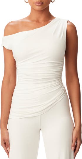 Sleek and sculpted, this self-lined one-shoulder top is a masterclass in understated glamour.