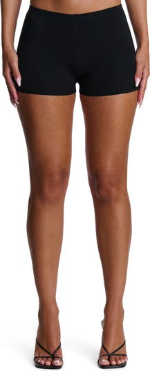 A figure-hugging silhouette enhances the sass of these ultrashort high-waist shorts cut from a soft, stretchy knit.