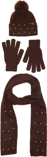 3-Piece Faux Pearl Scarf, Beanie & Gloves Set