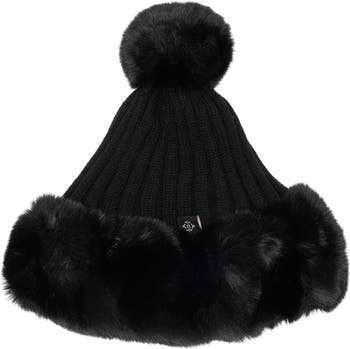 Fluffy faux-fur trim defines the cuff and pompom of a signature beanie designed to keep your noggin warm and your outfit looking chic.