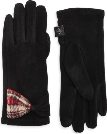 Two-tone bows with a partially plaid design bring a refined, preppy finishing touch to these cozy knit gloves.