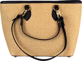 Easy to pair with your warm-weather outfits, this spacious tote is finely woven from raffia and trimmed in rich Italian leather.