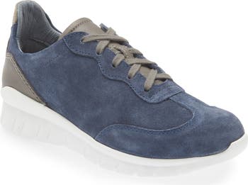 Earthy tones create a neutral look on a colorblock sneaker that's designed with a slip-resistant sole and arch support.