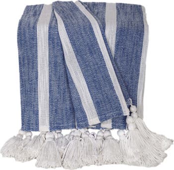 Refresh your home with this woven-cotton throw blanket trimmed with knotted tassels to bring style and comfort to your living space.