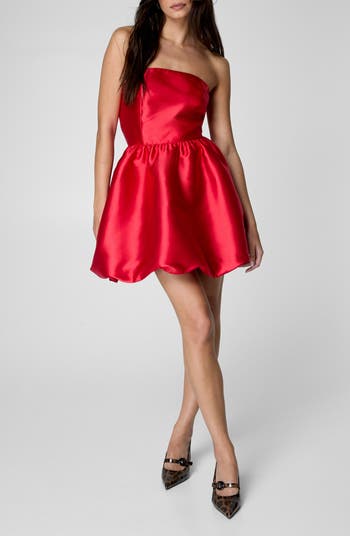 Bring vintage-inspired charm to your next special occasion in this sleek satin minidress cut with an adorable bubble hem.