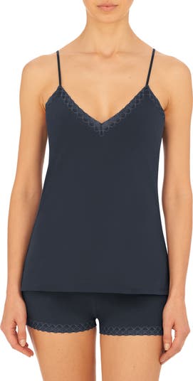 This trim and stretchy cotton cami is edged in lace and topped with thin elastic straps for a layer-ready look.
