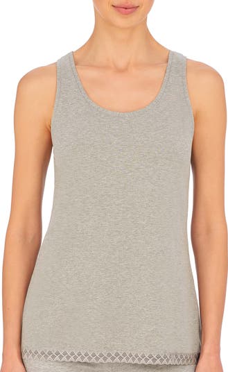 Lacy trim around the hem adds a hint of romance to this stretch-cotton tank that's luxuriously soft and naturally breathable.