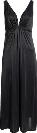 Feel your most enchanting in this stunning floor-length nightgown cut from smooth satin and styled with a gathered band under the bust for added drape.