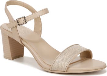 A well-cushioned footbed and heel put lasting comfort in every step of an elegant heeled sandal.
