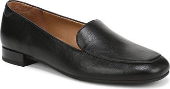 A squared-off toe and walkable heel balance a poised loafer grounded by a cushioned footbed for long-lasting wear.
