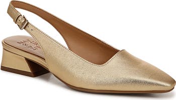 An adjustable slingback and kitten heel add a modern twist to a snip-toe pump complete with comfort-focused cushioning.