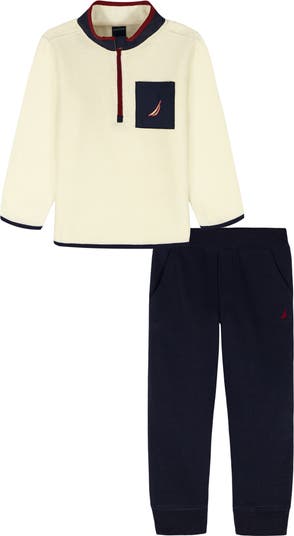 A soft fleece pullover pairs perfectly with easygoing joggers that create a cozy look for your little one, whether for classroom days or weekend outings.