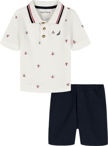Give your kid preppy style with this nautical printed polo and solid pull-on shorts set.