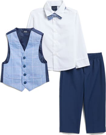 Give your kid smart style for special occasions with this perfectly coordinated four-piece set including a vest, bow tie, button-up shirt and pull-on pants.