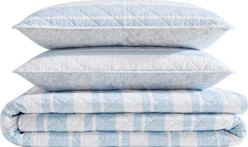 Drift off to dreamland with a quilted bedding set in a breathable cotton that includes a reversible quilt and coordinated pillow shams.