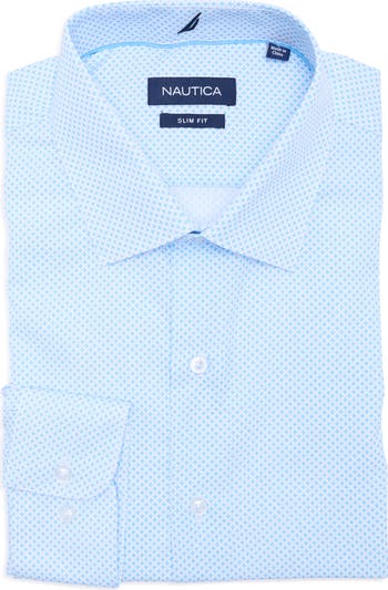 Breathable cotton construction keeps you comfortable from day to night in a dress shirt covered in a geometric print done at a micro-sized scale for a more subtle effect.