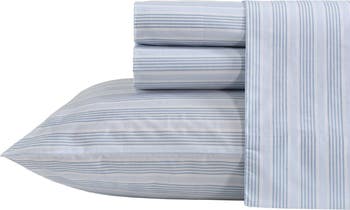Drift off to dreamland with a sheet set in smooth, lustrous cotton that includes flat and fitted sheets, and pillowcases.