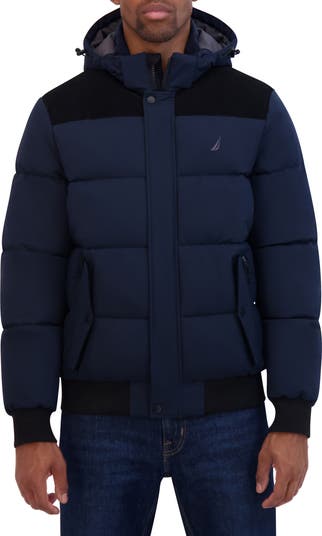 Designed to protect you from the elements, this water-resistant bomber jacket features channel quilting and contrasting corduroy shoulders.