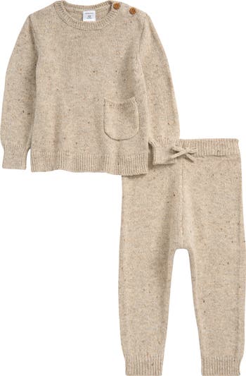 Flecks of color give a tweedy look to a cotton-blend crewneck that's paired with matching sweater-joggers for a cozy everyday look.