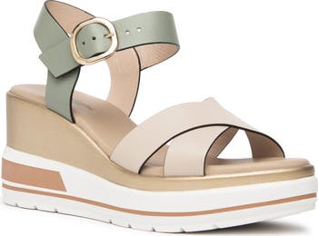A wedge heel and contrasting straps bring sporty, modern style to this standout platform sandal.