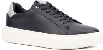 A well-cushioned lace-up sneaker features a bright white sole for a fashionable style to anchor any wardrobe.