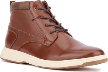 A plain toe and a grippy sole balance a sporty high-top sneaker crafted from faux leather with textured details.