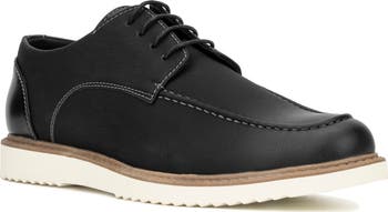 Contrast stitching brings polished style to this moc toe derby that offers a perfect mix of polished and casual.