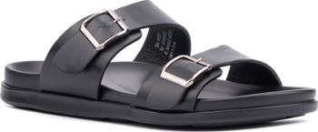 Buckled straps offer a customizable fit in a summery sandal built on a contoured footbed for lasting comfort.