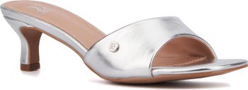 A sensible heel uplifts and shapes the elegant silhouette of this versatile sandal.