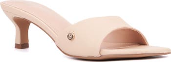 A sensible heel uplifts and shapes the elegant silhouette of this versatile sandal.