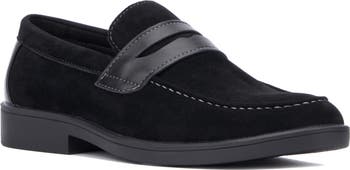 Two-tone faux leather defines a refined loafer that's grounded by a rubber sole for added durability.