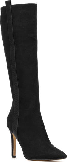 A pointy toe and stiletto heel balance a smooth knee-high boot fashioned with a side zipper for easy entry.