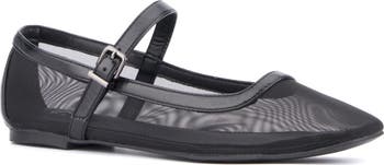 Fine mesh casts an ethereal spell on this minimalist mary jane with metallic trim tracing the graceful silhouette.