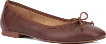 A pair-with-everything leather ballet flat looks totally on-point for the season thanks to a trend-savvy square toe.