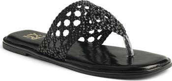 A latticed strap enhances the sunny-day charm of this sleek faux-leather slide sandal grounded by a flat, walkable sole.