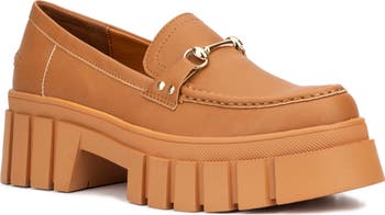 A lofty platform lug sole brings an on-trend finish to a loafer featuring a moc seam toe and polished horsebit.