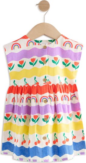 A colorful pattern splashes fun energy onto this adorable dress made of cotton and linen to keep them feeling breezy from daycare to playdate.