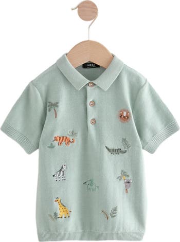 Embroidered animals roam in bright embroidery on this polo made of breathable cotton and sized for your favorite little explorer.