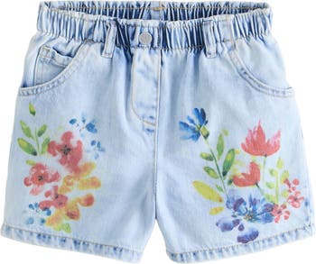 A perfectly placed floral print and faded wash highlight the vintage inspiration of these kid-sized shorts cut from rigid nonstretch denim.