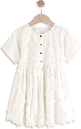 Tonal, three-dimensional blooms softly texture this button-front dress made of lightweight cotton to keep them feeling breezy.