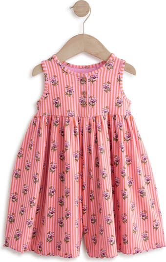 Warm weather days were made for this bicolor ribbed romper covered in a flowery print your little one will adore