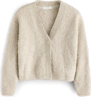 Metallic threads are shot through this fuzzy and lightweight cardigan to let your fashion-forward child sparkle anytime.