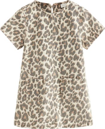 Unleash their wild side in this leopard-spotted shift dress that makes a great transitional piece with its denim fabrication.